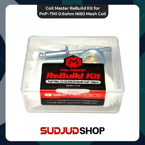 Coil Master ReBuild Kit for PnP-TM1 ชุดโมสำหรับคอยล์ PnP-TM1 จากแบรนด์ Coil Master ซึ่งเป็นผู้ผลิตอุปกรณ์เสริมรวมถึงอะไหล่ต่างๆเพื่อบุหรี่ไฟฟ้าที่มีชื่อเสียงอย่างมากในวงการนี้ รุ่นนี้เป็นขดลวดนิโครม Ni80 แบบขดลวดตาข่าย (Mesh Coil) ขนาด 0.6 โอห์ม พร้อมอุปกรณ์โมแบบครบครัน ทำเองง่ายๆได้ที่บ้าน ไม่ต้องไปหาซื้อเพิ่ม โดยสามารถใช้งานกับบุหรี่ไฟฟ้ารุ่น Drag X , Drag S , Vinci R Pod , Vinci X Pod รวมถึงรุ่นอื่นๆที่รองรับคอยล์ในซีรี่ส์ PnP