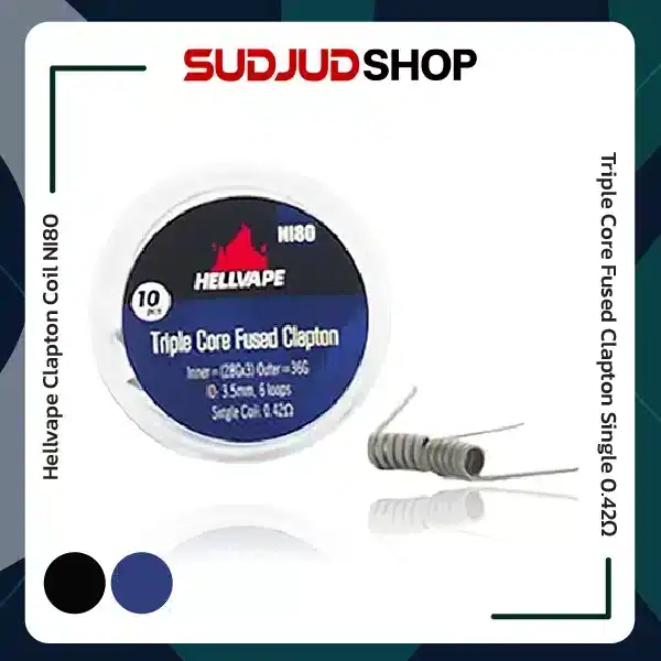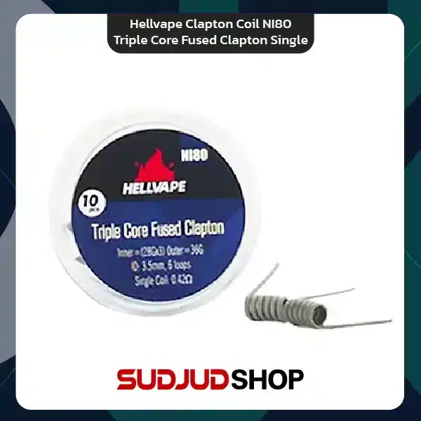 Hellvape Clapton Coil NI80 Triple Core Fused Clapton Single 0.42 ลวดบุหรี่ไฟฟ้าแบบสำเร็จ Fused Clapton 3 แกน ค่าโอห์มอยู่ที่ 0.42 / 1 ตัว ให้กลิ่นที่ชัด และควันที่จัดเต็ม เหมาะกับฟิลสูบแบบ DL ผลิจจากลวด Ni80 ที่มีคุณสมบัติไม่เป็นสนิม และนำความร้อนได้ดี ค่าโอห์มไม่แกว่งเวลาใช้ไฟสูงๆ เป็นลวดที่นักสูบสายโมนิยมใช้กันเป็นจำนวนมาก ขนาดลวด 28ga จำนวน 3 เส้นพันรอบด้วยลวด 36ga ใช้งานง่าย ใช้ได้ทั้งมือใหม่ และนักสูบที่มีประสบการณ์