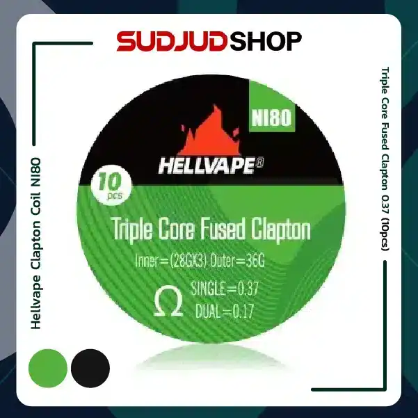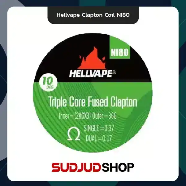 ลวดสำเร็จ Hellvape Clapton Coil NI80 Triple Core Fused Clapton 0.37 ลวดบุหรี่ไฟฟ้าแบบสำเร็จ เป็นลวด Clapton 3 แกน นำความร้อนได้ดี ไม่เป็นสนิม