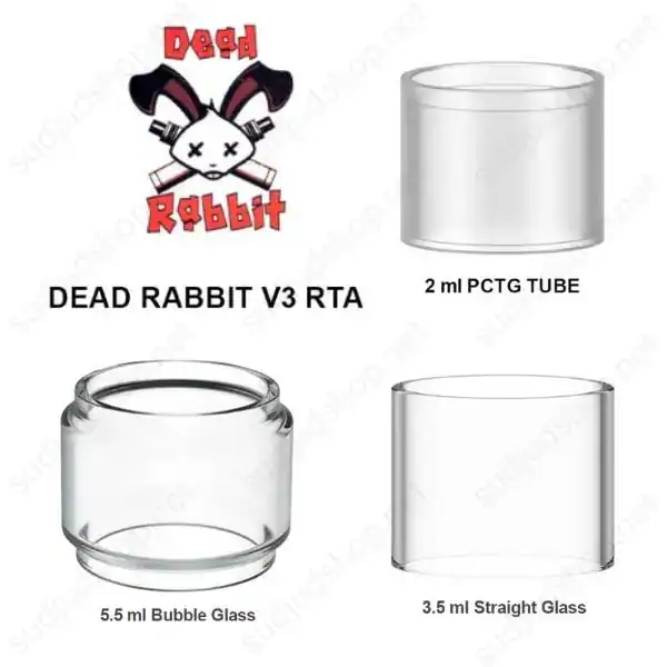 แท็งก์แก้วสำรองสำหรับใช้งานกับอะตอมบุหรี่ไฟฟ้า Dead Rabbit 3 RTA จากแบรนด์ Hellvape โดยเฉพาะ ซึ่งเป็นอะตอมบุหรี่ไฟฟ้าที่ได้รับความนิยมอย่างมากจากนักสูบ และได้ชื่อว่าเป็นหนึ่งในอะตอม RTA ที่ให้กลิ่น และฟิลสูบดีมากๆ ตัวแท็งก์จะผลิตจากวัสดุประเภทแก้วที่มีความทนทานสูง และมีความใส สำหรับขนาด 3.5ml. เป็นแก้วทรงตรง และ 5.5ml. เป็นแก้วทรงบับเบิ้ล ส่วนขนาด 2ml. จะผลิตจากพลาสติก PCTG ที่มีคุณภาพ ใครที่มีอะตอมรุ่นนี้อยู่ควรหาไว้เป็นตัวสำรอง เมื่อเกิดเหตุไม่คาดฝันจะได้ใช้งานแบบไม่ขาดตอน