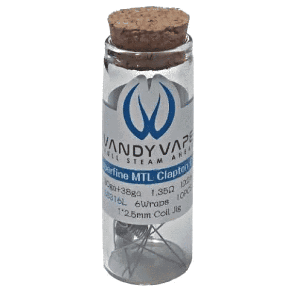 ลวดสำเร็จ Superfine MTL Clapton Coil/NI80/30ga +38ga/ID:2.6 พัน 6 รอบ 1.65โอห์ม 10ชิ้น/ขวด ลวดสำเร็จจากแบรนด์ Vandy Vape