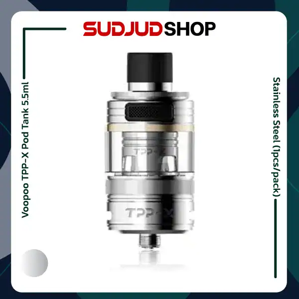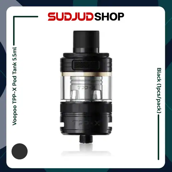อะตอมบุหรี่ไฟฟ้า TPP-X Pod Tank หัวแท็งก์เปล่าที่ถูกสร้างขึ้นมาเพื่อตระกูล Drag X, S พัฒนารูเติมน้ำยาแบบใหม่ เติมง่ายกว่าเดิมไม่รั่วซึมให้เลอะเทอะ ความจุขนาด 5.5 ml ตัวแท็งก์ผลิตจาก Stainless Steel แข็งแรง น้ำหนักเบา และทนความร้อน ส่วนของแก้วใช้วัสดุคุณภาพ Food Grade มาพร้อมปากสูบขนาด 810 ที่สามารถถอดออกได้ จึงง่ายต่อการถอดล้างทำความสะอาด และนำแบบอื่นมาเปลี่ยนใส่ได้ ซึ่งหัวพอตรุ่นนี้ออกแบบมาเพื่อให้ไหลเวียนของระบบอากาศด้านล่างแบบ 360 องศา และดีไซน์กระแสลมอยู่ด้านล่างทำให้ควบคุมการไหลเวียนของอากาศแบบแม่นยำยิ่งขึ้น และระบบแท่นดูดแม่เหล็กจะทำให้วิธีเติมน้ำยาง่ายมากที่สุด มือใหม่ก็ใช้ได้แบบไร้ปัญหา รวมถึงมีระบบป้องกันเด็กเล่นเพื่อช่วยเพิ่มความปลอดภัยอีกด้วย